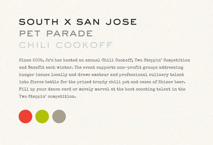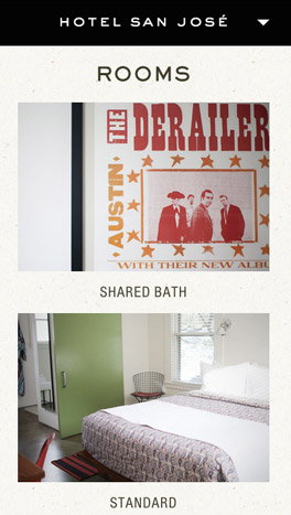 The Hotel San Jose has a u-shaped history in the city of Austin. Built as a motor hotel in the 1930’s, the property fell into disrepair and operated as a low rent residential hotel for many years. The San Jose emerged in the 90’s as a beacon of rejuvenation on the neglected South Congress strip. Under the ownership of upstart hotelier Liz Lambert, the San Jose has evolved into a truly unique cultural destination for travellers and locals alike. They have a parade for dogs in drag for pete’s sake. How can you not love it? As design lead on the project, I was asked to bring the hotel's digital marketing tools in synch with those used offline.