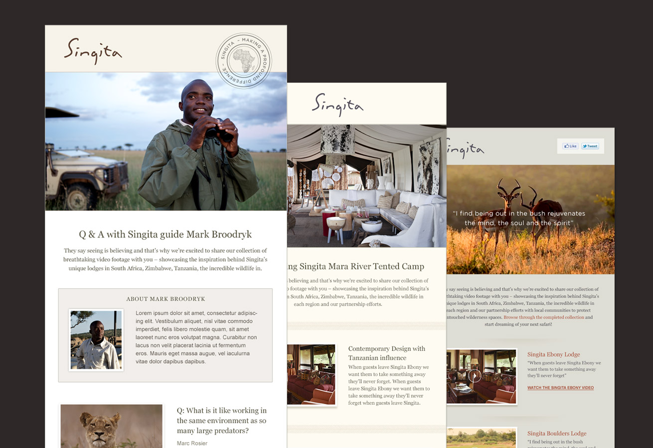 I developed a quiver of templates for Singita's email marketing. While they share common DNA, each template is designed to serve a specific audience.
